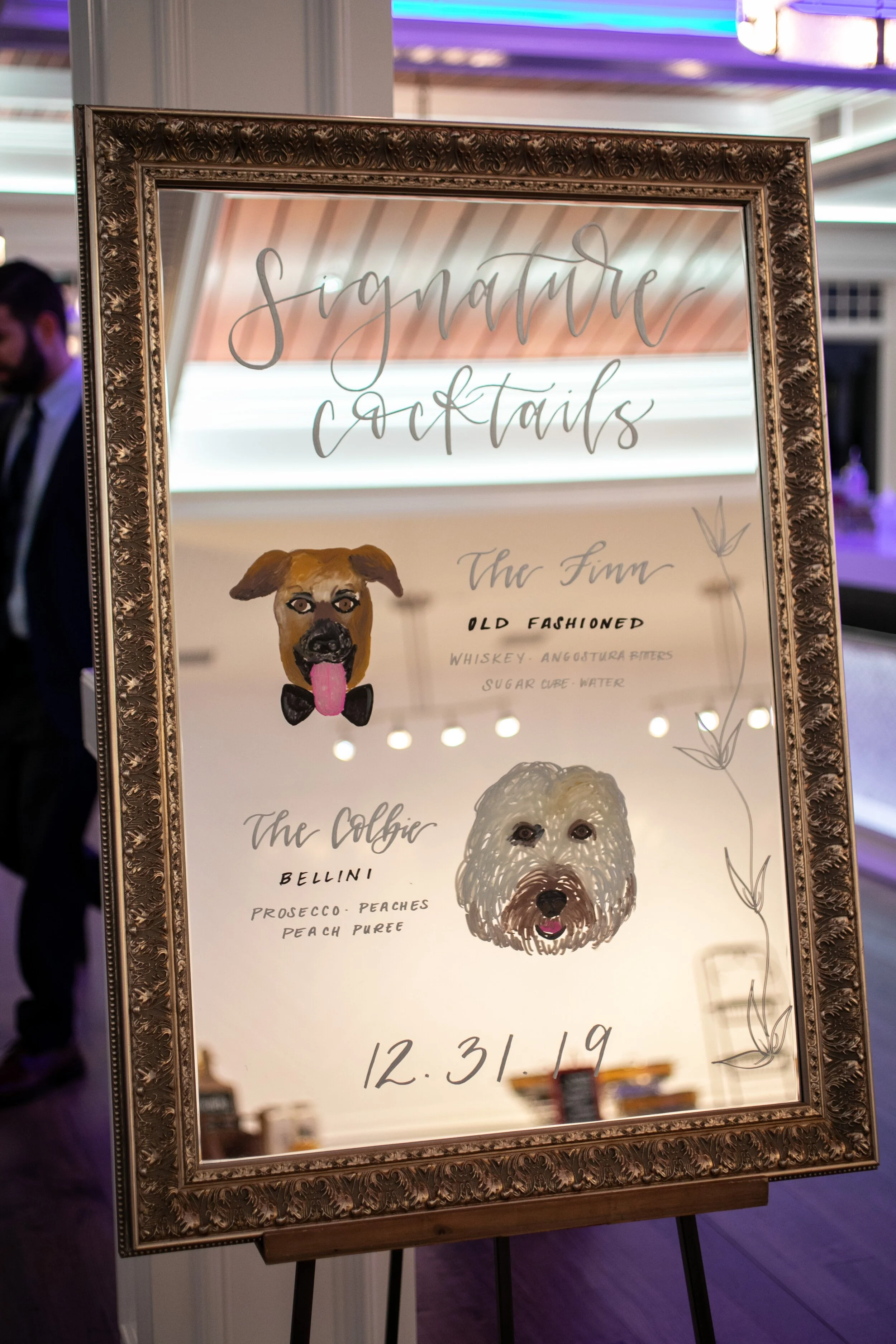 “Signature cocktail signs are the easiest way to do so,” says Jessica. “Not only are signature cocktail signs, in my opinion, 100% necessary, but jazz it up by naming it after your pups.”