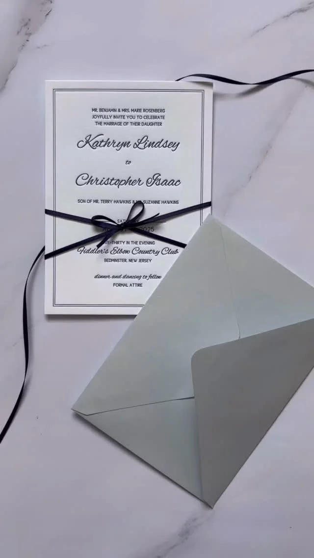 With hunter green hues and romantic floral patterns, these laser-cut enclosures are the perfect way to announce a grand celebration at a glamorous mountainside estate.
